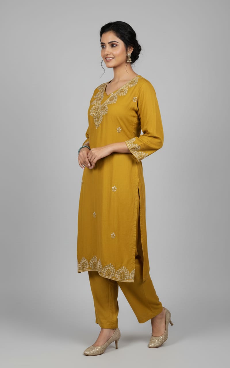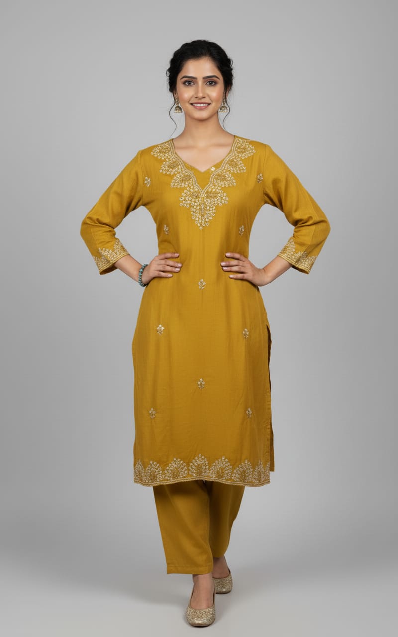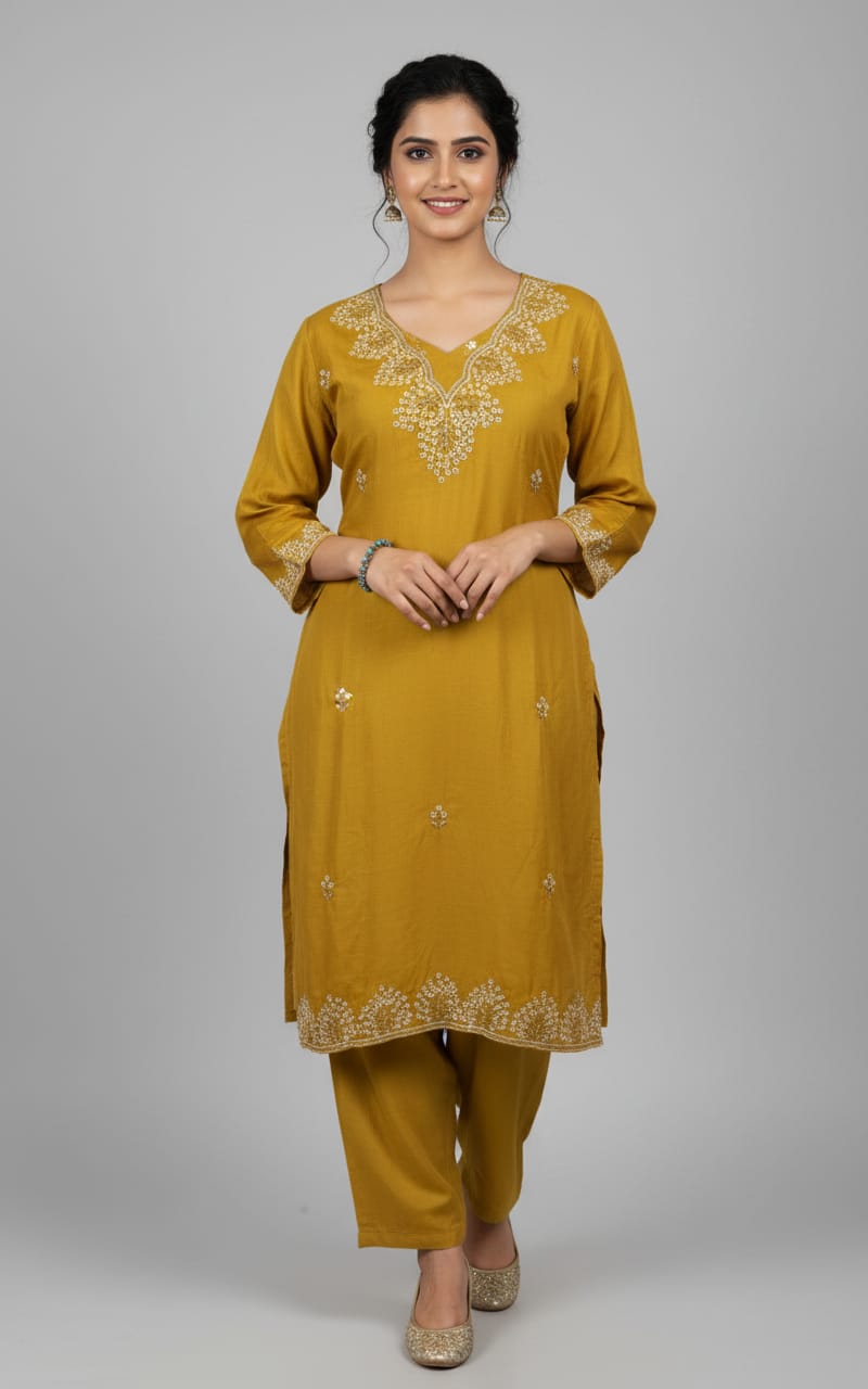 Paired with matching straight pants, this outfit is perfect for festive celebrations, family gatherings, casual parties, and traditional events. Style it with jhumkas and bangles for a complete ethnic look.